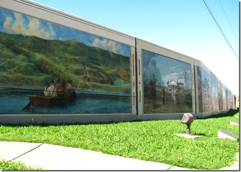 Thirty two murals by artist Robert Dafford depict important events in Vicksburg’s history. They’re painted along the floodwall on Levee Street. Each mural has a brass plaque explaining the event depicted. The Children’s Art Park, which has mosaic artwork made by kids, splash fountains, and a playground is located across the street.