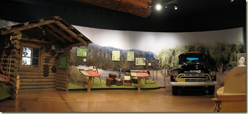 Wheelchair users should drive through the gate and park in the paved handicapped site to avoid trying to push through the gravel lot. This lot is large enough for most RVs but there is more parking in the fairgrounds lot at the top of the hill if necessary. Museum