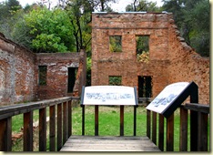Shasta had its start as a gold rush town but soon settled into a major supply center for other mining towns. When the railroad bypassed it in the 1880s it lost most of its population. Some of the buildings were dismantled so that the bricks could be reused in Redding. A line of commercial buildings along Route 299 are just hollow facades but a few buildings are still standing. The old court house is now a museum with historical displays about the town, artifacts from early families, an art collection and a jail in the basement. A general store, which operated for 100 years, is stocked with 1880s merchandise. A bakery has also been restored.